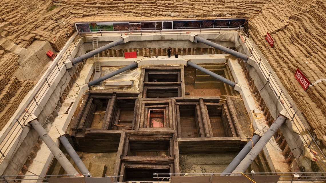 The The excavation of the tomb of King Kaolie of Chu 楚考烈王 at Wuwangdun 武王墩 in 2020-24 represents one of the most important archaeological discoveries in recent years. Although the burial chambers had suffered looting damage from the Tang dynasty through as late as 2015, impressive quantities of artefacts have been recovered from the tomb including 154 bronze vessels, two sets of bells, numerous jade objects, oracle shells, and about 200 bags of plant remains. The wooden